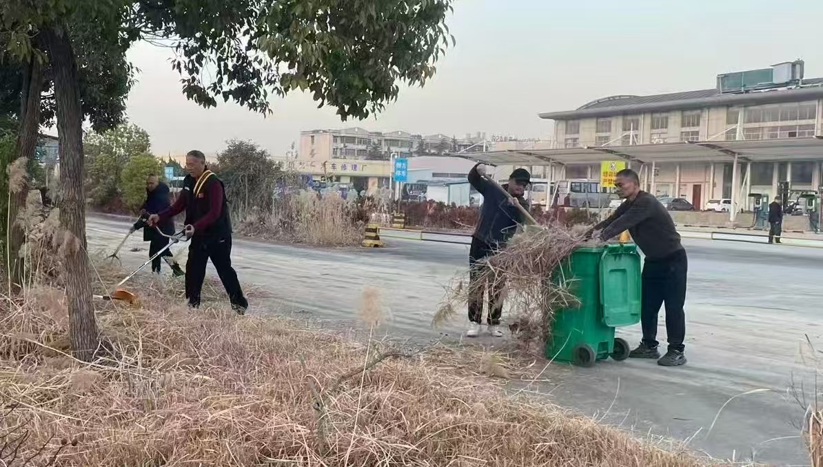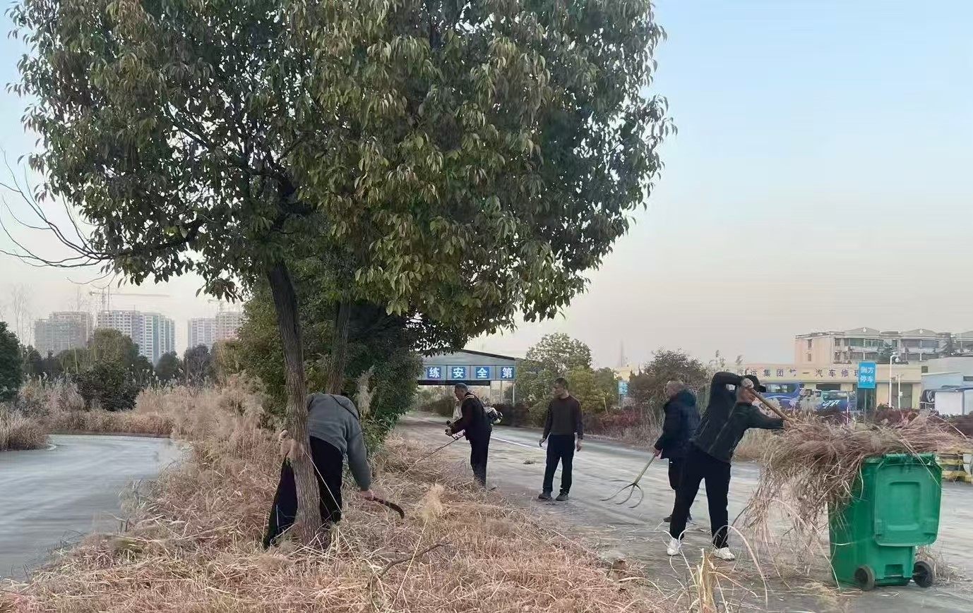 活动现场,党员们分工协作,有条不紊地清理训练场内外的枯草、碎石和杂物。寒冬时节,杂草根系紧实,挥镰割除、集中清运,经过数小时“奋战”,场地视野逐渐开阔,潜在安全隐患逐一清除,有效解决了冬季训练场杂草遮挡视线的问题。