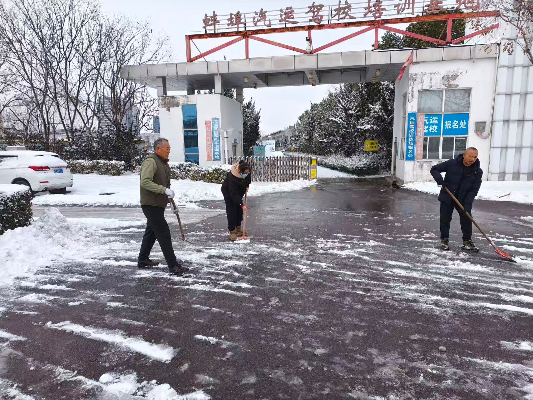 寒潮来袭,一场突如其来的暴雪席卷全城,市汽运驾校训练场被积雪覆盖,道路湿滑难行,不仅严重影响正常训练,更暗藏诸多安全隐患。为保障学员训练安全、消除场地风险,支部第一时间启动应急响应,以“我为群众办实事”为导向,组织党员职工开展“扫雪除冰保畅通”主题党日活动。