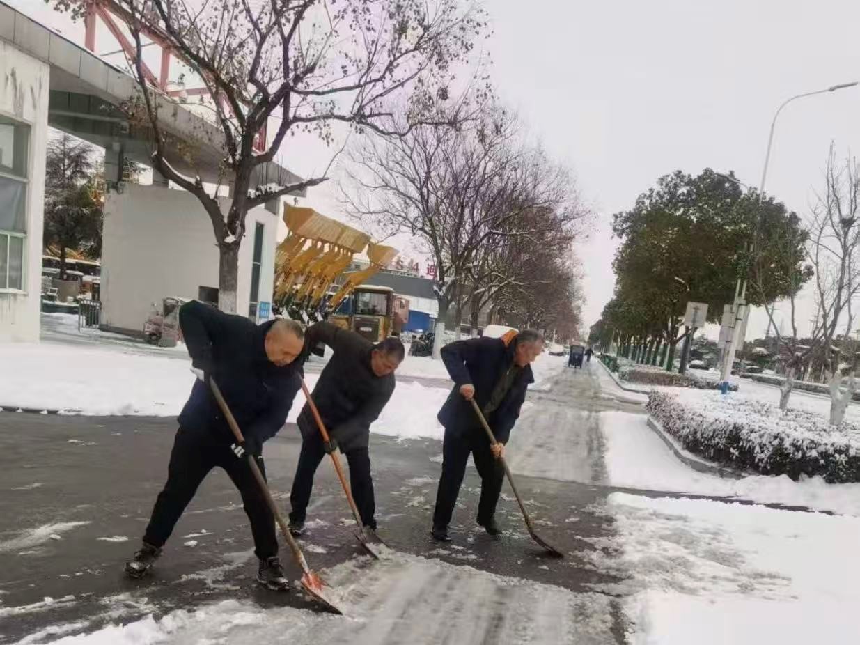 活动现场,党员干部率先“迎战”,带领职工们迅速投入工作:大家手持铁锹、扫帚等工具,分工明确、默契配合,奋力铲除场地主干道积雪,开辟安全通道;仔细清理训练车位、坡道等关键区域冰层,防止学员训练时滑倒。不畏严寒,“热力”十足。