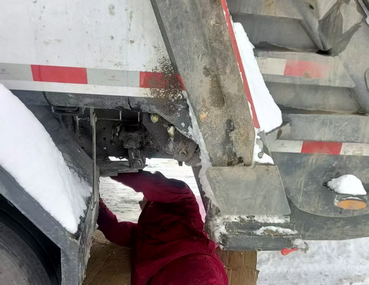 在零下冰冷的路面上,王师傅仅以一块纸板垫身,便全力展开抢修。面对被冻住的车辆部件,他凭借精湛技术和顽强毅力,在一小时内排除故障,确保环卫车有效恢复制动,及时重返清雪一线,再次投入到这场“战风雪,保畅行”的“战斗”中。
